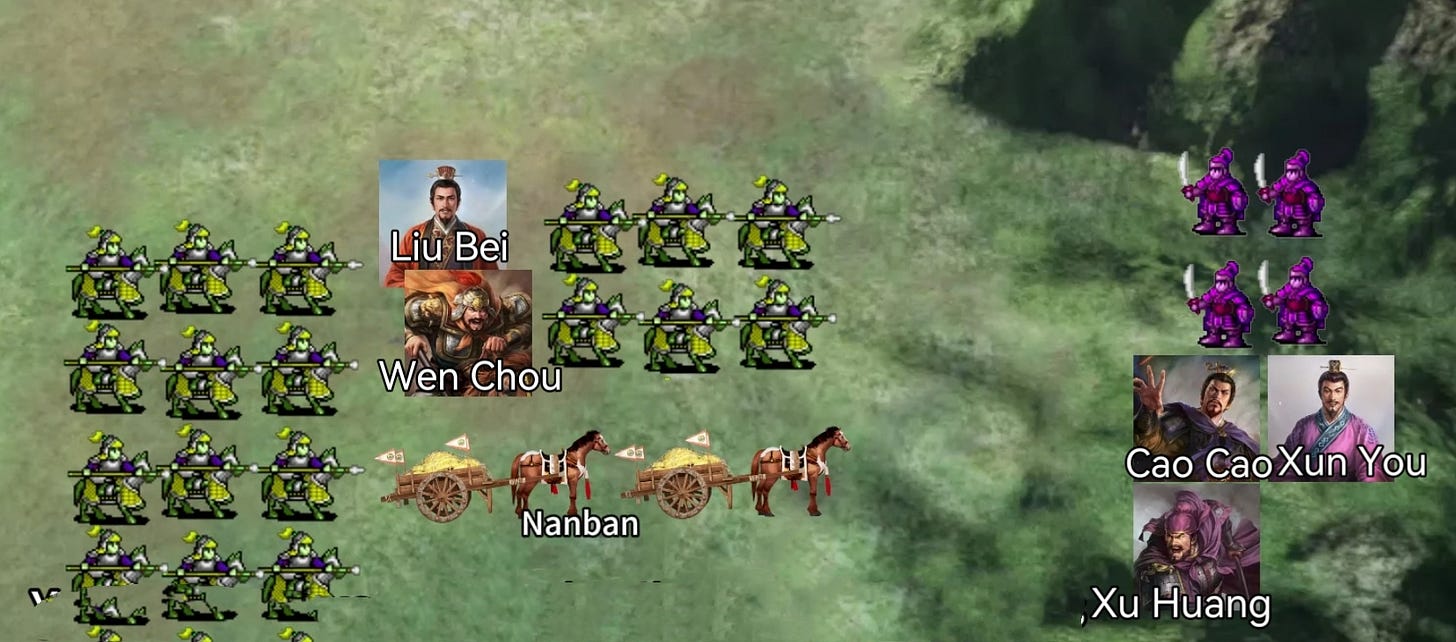 Cao Cao saw the opportunity and ordered everyone to jump on horses and launch a surprise attack, Yuan's army was caught off guard and immediately defeated, Liu Bei saw that the situation was not good,fled quickly,while Wen Chou was killed in the chaos. Cao Cao then smoothly withdrew to the Guandu battalion.