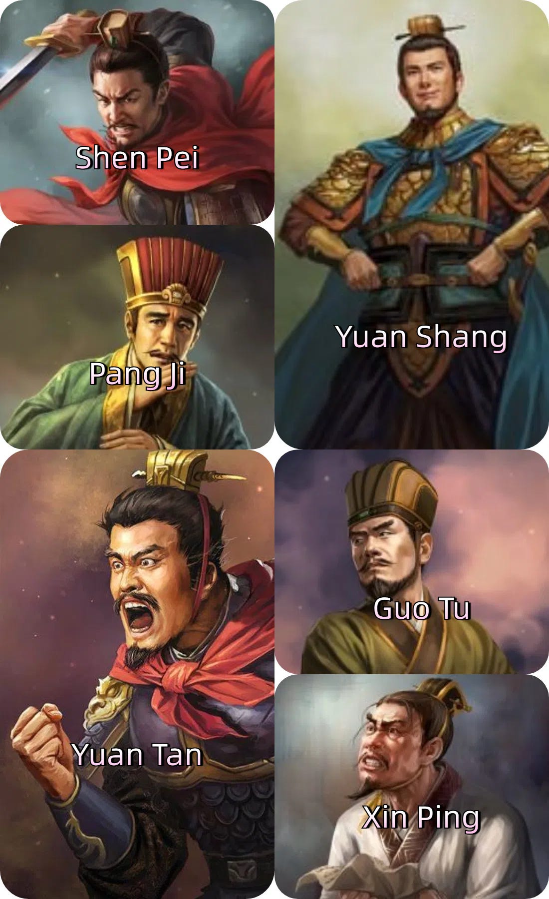In July 202 AD,Pang Ji ,Shen Pei and others forged Yuan Shao's edict,under the pretext of Yuan Shao's last words,supporting Yuan Shang in Yecheng to succeed him.