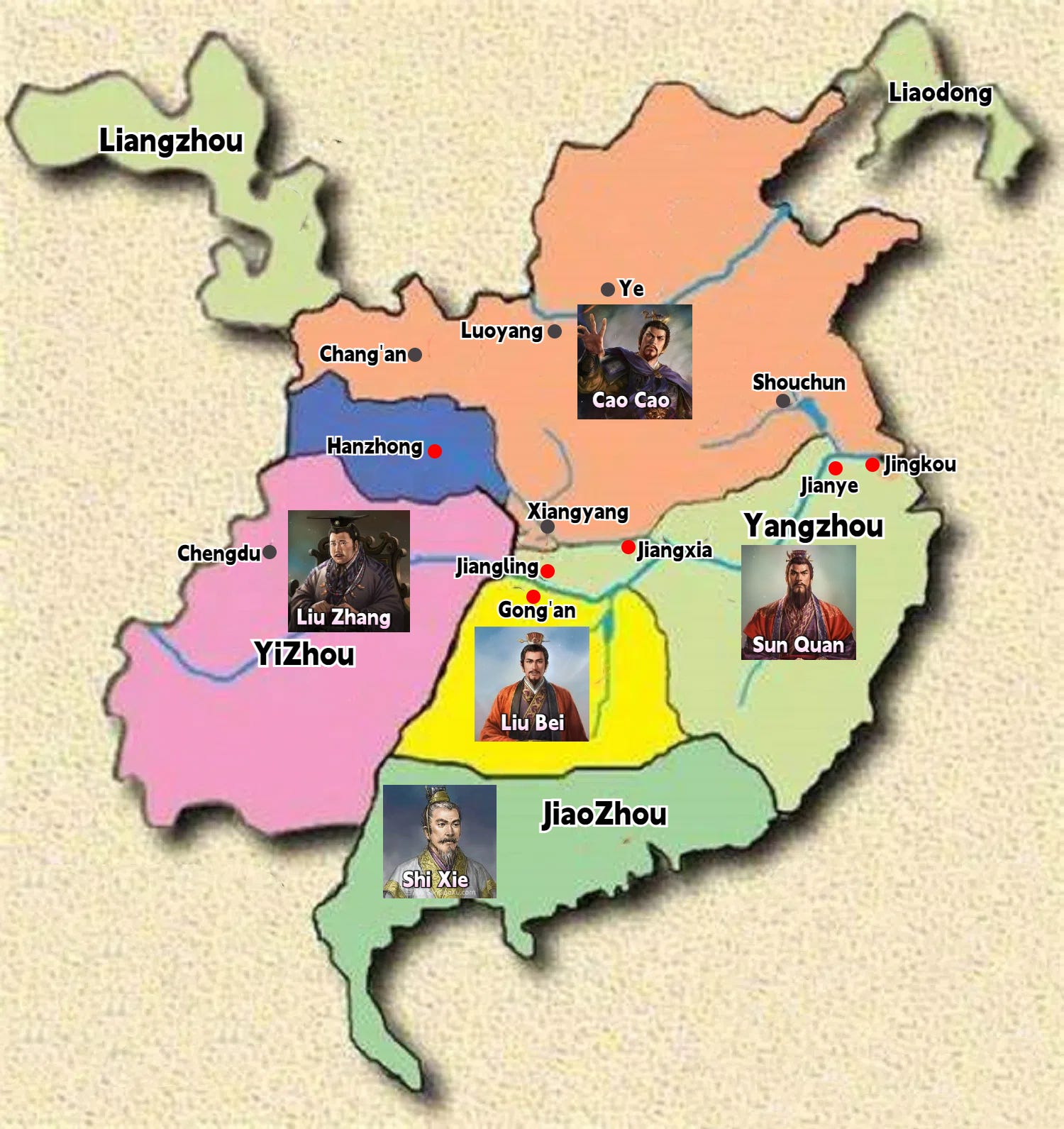 To break this deadlock, in 210 AD, Liu Bei returned to Jingkou(modern Zhenjiang镇江) to meet Sun Quan. His message was clear: “Gong’an is too constricting. I request control of the northern bank of Nanjun南郡 Commandery along the Yangtze, including Jiangling City, so that my title as Governor of Jingzhou may hold true authority.”