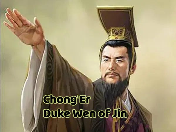 Jin's history was stained with bloody power struggles among royal menbers. Chong'er重耳, later known as Duke Wen of Jin (晋文公one of the Five Hegemons during Spring and Autumn period,reigned Jin State 636-628BC), was forced into 19 years of exile due to such vicious intra-clan conflicts.